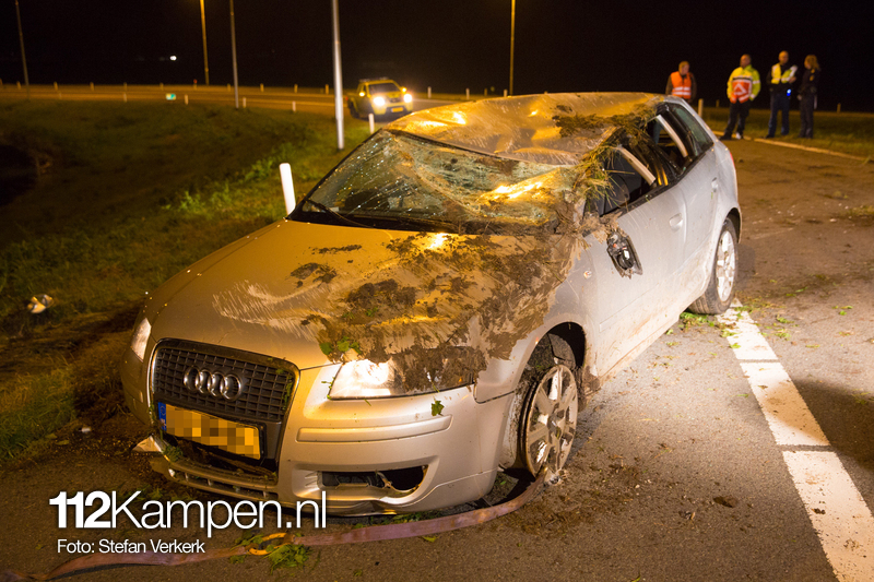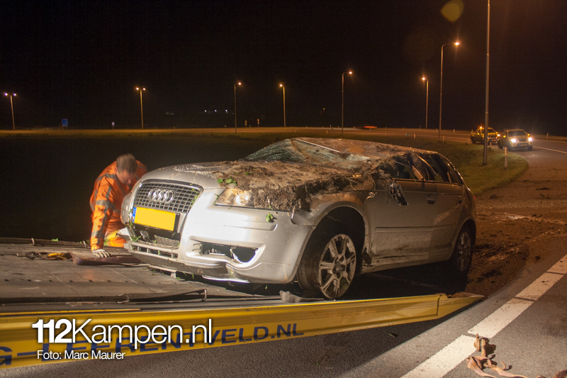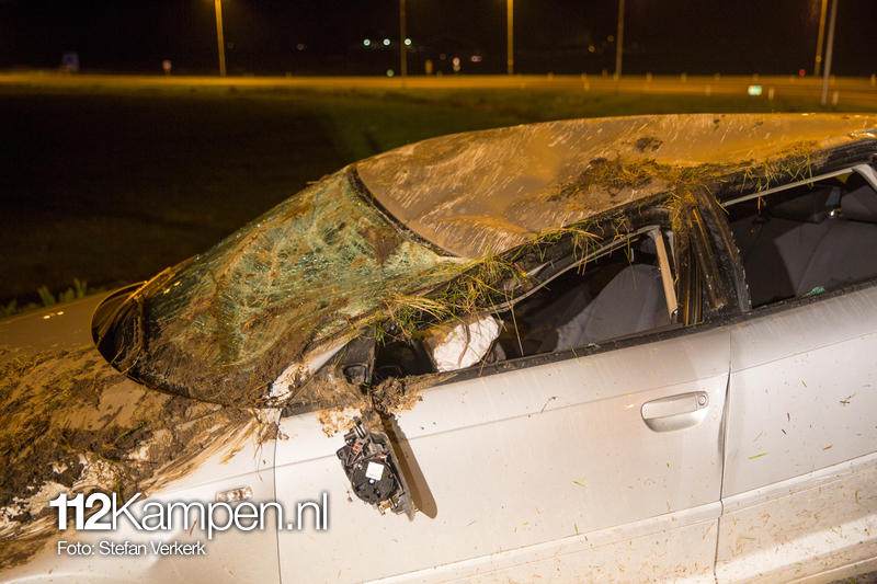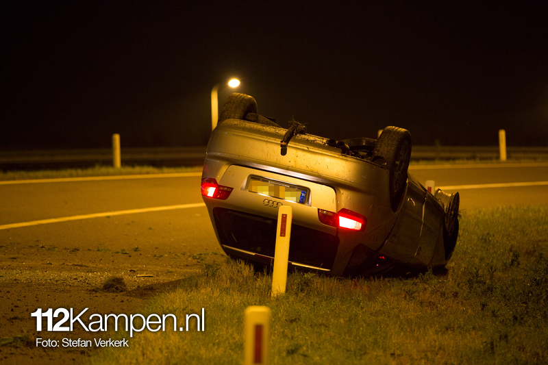 Foto's: Ongeval auto over de kop N50 Kampen-Zuid