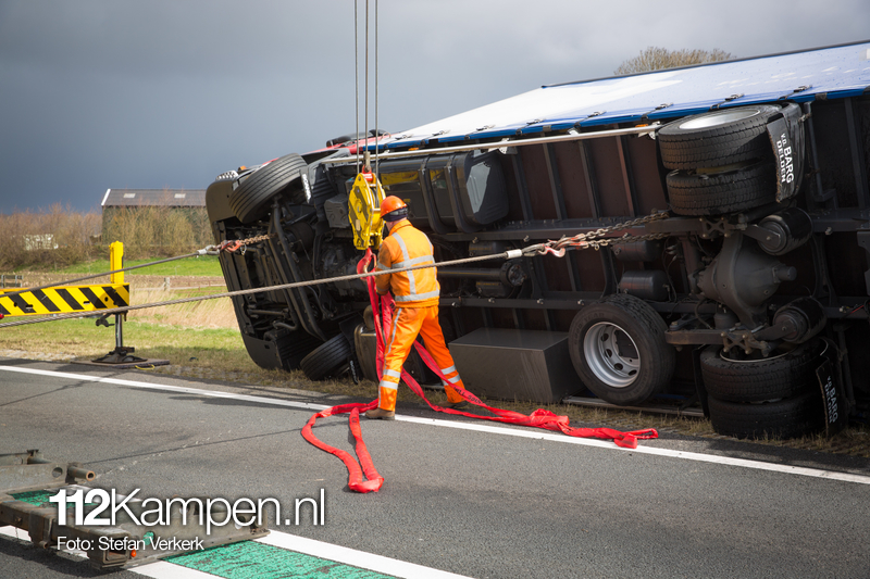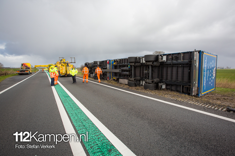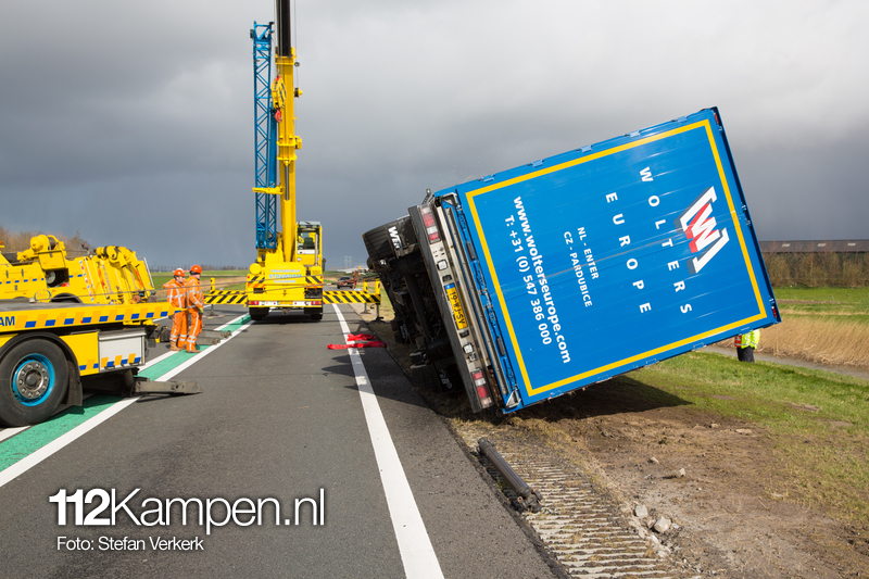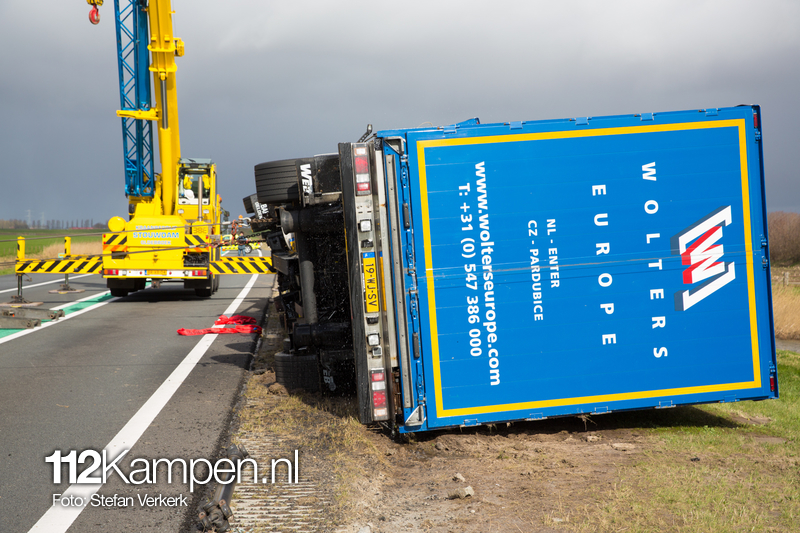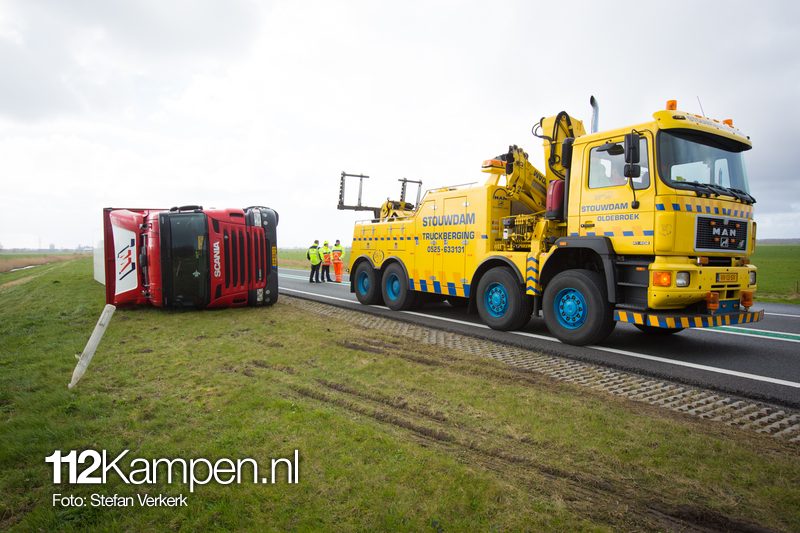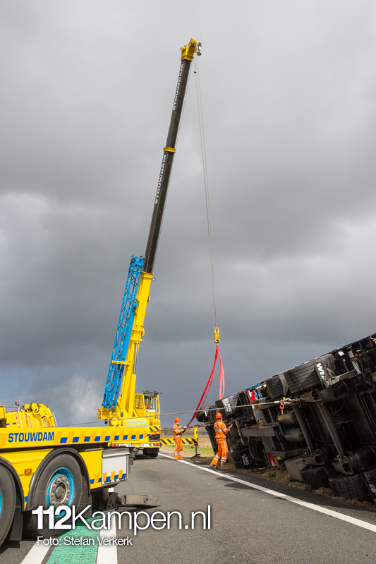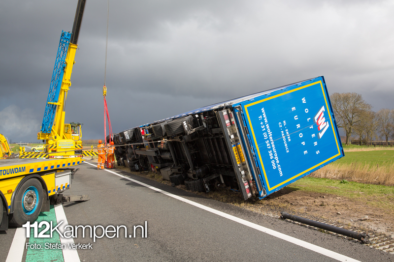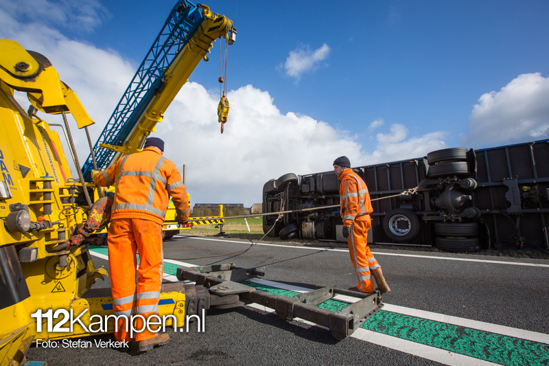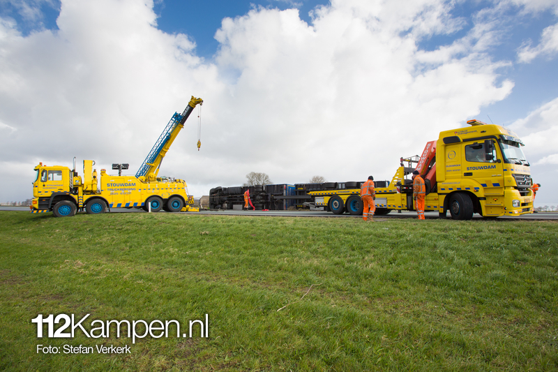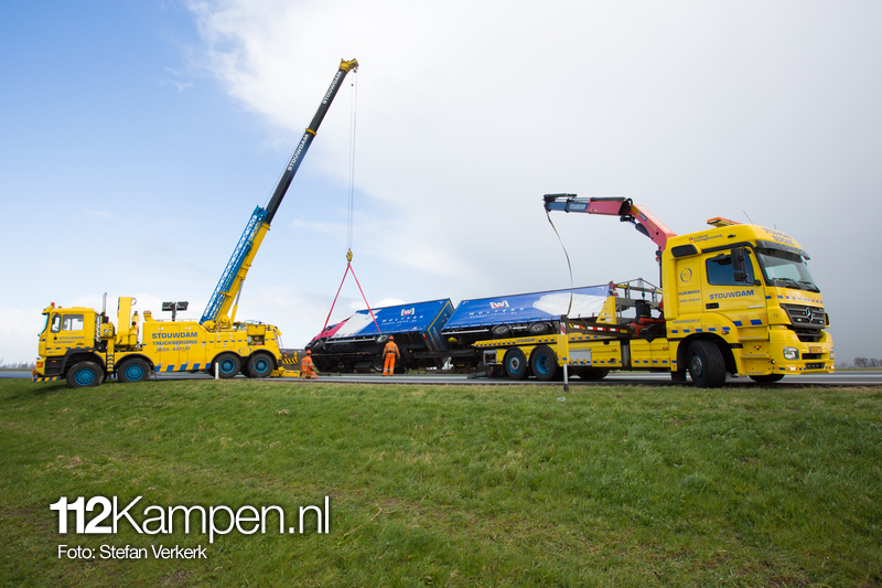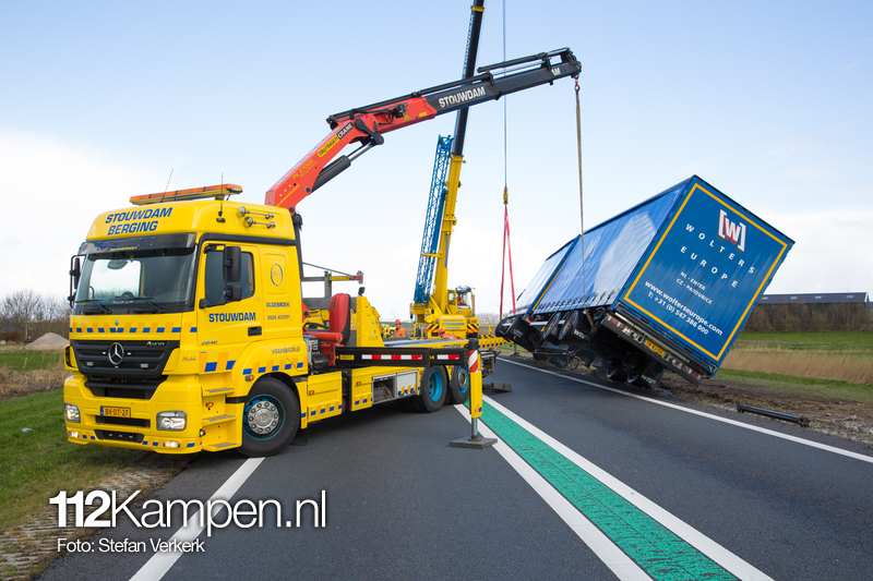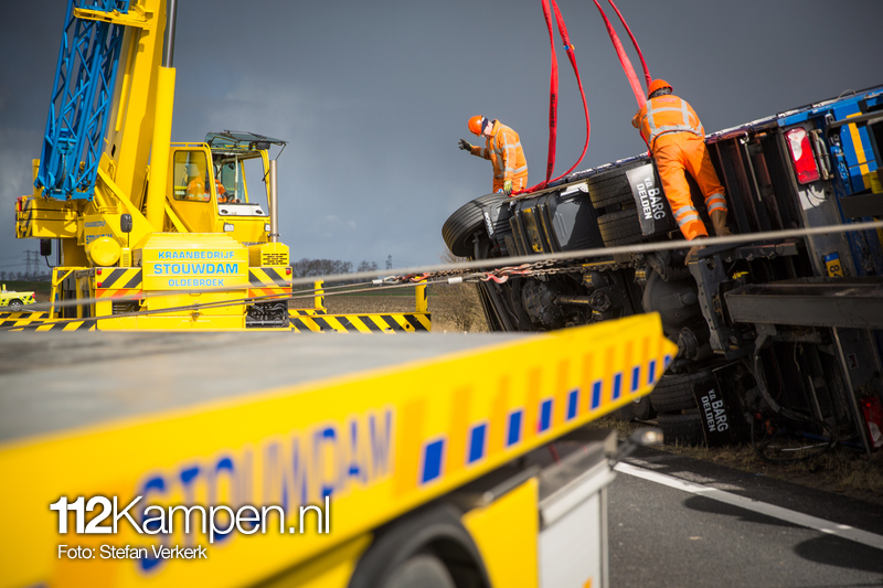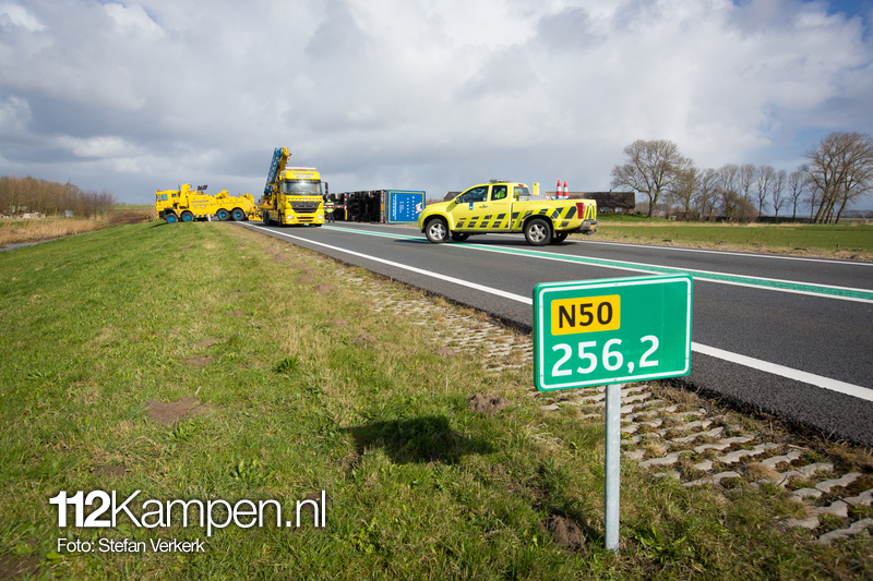 Foto's: Uitgestelde vrachtwagenberging N50 L 256,2 Kampen